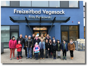 Ausflug ins Freizeitbad nach VegesackAm 25. November 2018 ist der Visselhöveder Schwimmclub mit dem Bus mit einigen Schwimmerinnen und Schwimmern, sowie deren Familien und Freunden, ins Freizeitbad nach Vegesack gefahren. Dieses Mal ging es allerdings nicht um den sportlichen Ehrgeiz oder einen Wettkampf, sondern um eine reine Spaßveranstaltung.Im Schwimmbad konnten sich alle ordentlich austoben. Es war für Jeden etwas dabei. Wer wollte, konnte die beiden Rutschen testen, ein paar Bahnen im Schwimmerbecken ziehen, in einen der Freizeitbecken herumtollen oder einfach die Seele im Solebecken baumeln lassen. Nach einem schönen Ausflug ging es dann am späten Nachmittag wieder mit dem Bus zurück nach Visselhövede.