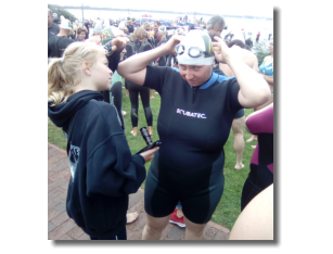 Quer durchs MeerAm 10. August 2019 fand in Bad Zwischenahn die DLRG-Veranstaltung „Quer durchs Meer“ statt. Hier galt es eine Strecke von insgesamt 3,2 km durchs Bad Zwischenahner Meer zu schwimmen. Mit dabei waren neben Katrin Magnus vom VSC auch 389 andere Teilnehmer. Unter anderem der deutsche Meister in 200m Brust.Zuerst gab es eine kleine Einweisung am Zwischenahner Strandbad. Dann wurden die Schwimmer mit der Fähre auf die andere Seite nach Dreibergen gefahren. Dort wurde dann bei starkem Gegenwind und Wellengang im Massenstart die 3,2 km lange Strecke freigegeben. Der Streckenverlauf ist mit Bojen markiert worden und diverse Boote der DLRG sorgten für weitere Wegweisungen und Sicherheit während der Veranstaltung. Nach 00:45:50 erreichte der erste Teilnehmer das Ziel. Katrin schwamm im Mittelfeld mit und erreichte nach 01:32:00 das Ziel. Hier wurde sie bereits von ihrer Familie und gut 800 weiteren Zuschauern erwartet und die letzten Meter quasi an Land begleitet. Ihre Kinder waren zwar etwas enttäuscht, dass sie nicht mitschwimmen durften, da die Veranstaltung sinnvollerweise erst ab 16 Jahren war.Die Zuschauer feierten jeden Schwimmer, der die Ziellinie überquerte. Auch als die letzte Schwimmerin nach etwas über drei Stunden ins Ziel kam, wurde kräftig gejubelt. Insgesamt war die Veranstaltung toporganisiert und es herrschte eine super Stimmung unter den Schwimmern und Zuschauern. Zum Schluss wies der Veranstalter noch einmal eindringlich darauf hin, wie wichtig es sei, den Kindern so früh wie möglich das schwimmen beizubringen und das ausdauernd. Dabei sei es ganz gleich ob bei der DLRG oder im örtlichen Schwimmverein.