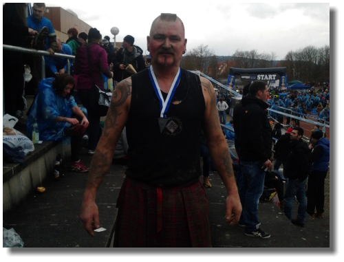 Wasser war auch dabei! Mal auf eine ganz andere art und Weise wurde der Visselhöveder Schwimmclub am 09/03/2013 von Ralph Hagge vertreten. Mit einem Arbeitskollegen reiste er am 08. schon noch Bayern um dort in Münnerstadt am Braveheartbattle teil zu nehmen. Hierbei handelt es sich um einen Lauf mit natürlichen und künstlichen Hindernissen, der in der Länge und den Hindernissen immer variiert. In diesem Jahr ging es über 48 Hindernisse auf 26 km, immer mit dabei ist der örtliche Fluss Lauer. Dieser muss je nach Laune der Veranstalter bis zu zehnmal durchquert werden. Es ist eine einzige Schlammschlacht, in lehmiger Umgebung, mit darunter liegenden groben Gestein. Von den 2548 ins Ziel gekommenen Läufern und Läuferinnen belegte im Schongang Ralph, nach insgesamt 2400 überwundenen Höhenmetern, den 1293 Platz. Da es um Teamgeist geht und er auf sein Partner wartete ging der Lauf erst nach gut 16 Km richtig los, hier musste sein Kollege den Bergen Tribut zollen und runterschalten, ihm verkrampften beide Wade. Ralph konnte dann doch richtig aufdrehen und kam trotz im Vorfeld mehrfach gerissenem Wadenmuskel und angebrochenem Sprunggelenk gut durch. Es reichen 30 Trainingskilometer aus, wenn man will, sagt er. Wer jetzt Interesse hegt, kann und sollte sich zügig auf der entsprechenden Website anmelden, da es nur wenige Plätze für 2014 gibt.